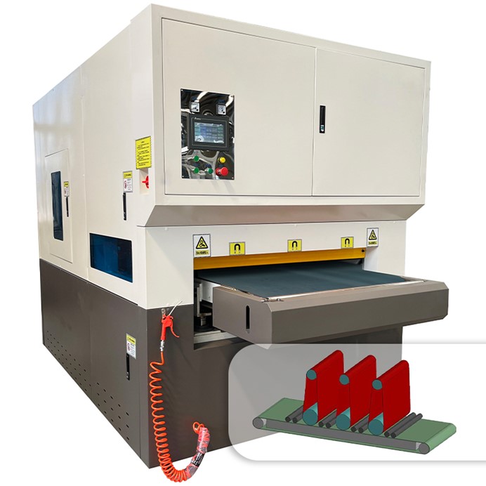 · This dry sanding belt machine is equipped with a three belt design, which efficiently integrates three core functions: deburring, smooth edge treatment, and surface finishing. It can accurately remove burrs on the edges and hole positions of workpieces, and quickly create smooth and rounded workpiece contours in metal plate drawing, descaling, polishing, and slight chamfering operations, greatly improving processing efficiency and surface texture